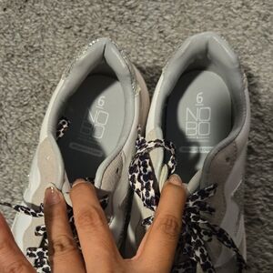 No Boundaries Cream and Gray Sneakers with Leopard Laces