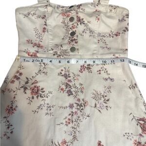 Charming midi dress with floral design. Cream base with purple and pink flowers. Ideal for casual outings. Small (3-5)