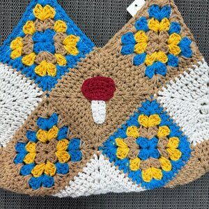 No Boundaries Crochet Handbag With Wooden Handles & Mushroom Design One Size