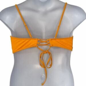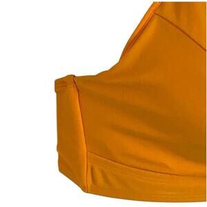 Excellent used condition No Boundaries bikini swim top in size XL. Features full coverage molded cups, adjustable straps, and a loop-and-tie string back for a customizable fit. Open vented strips between the breasts add a stylish, retro-inspired detail. Perfect for beach days, poolside lounging, festivals, or boho-inspired looks. Keywords: No Boundaries swim top, XL bikini top, full coverage bikini, padded cups, adjustable straps, dark golden yellow, swimsuit top, retro swimwear, festival beachwear, feminine bikini top. Approximate measurements: bust 19” flat-lay, adjustable straps, back tie allows fit flexibility.