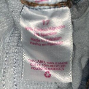 Waist = 17 inches, Rise = 12 inches, Inseam = 28 inches.