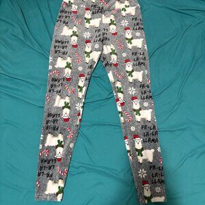 Get cozy for the holidays with this adorable “Fa-La-La Llama” pajama set from No Boundaries! This matching two-piece set features a super soft fleece fabric with a festive llama print wearing Santa hats, candy canes, and snowflakes — perfect for lounging or holiday movie nights.