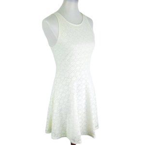 No Boundaries Fit Flare Dress Sz M Ivory Lined Overlay Open Back