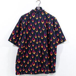 No Boundaries Flames AOP Short Sleeve Button Camp Shirt XL Y2K Skater Streetwear