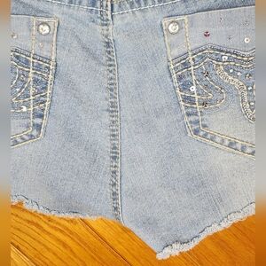 No Boundaries Frayed And Ripped Light Wash Blue Denim Sequin Shorts Size 15. These have accent jewels, beautiful embroidered details with added sequins. Hardly worn, excellent condition!