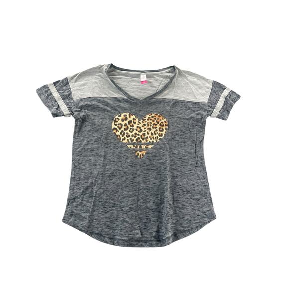 No Boundaries Girls Gray Leopard Heart Short Sleeve Tee Junior's Medium 7-9