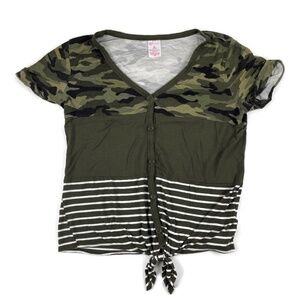 No Boundaries Girls Shirt, Green Camo. Tie in the front. Spot on the back shoulder as shown.