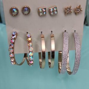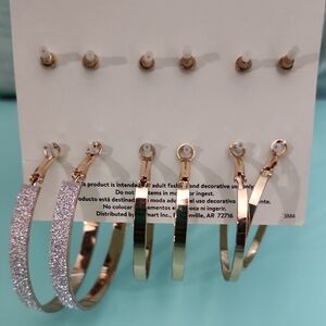Stylish earring set by No Boundaries. Includes 5 gold and 1 silver/gold tones. Perfect for any occasion.