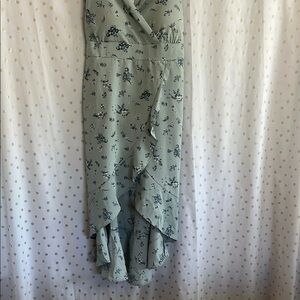 Stylish green dress with floral pattern. Features a wrap design and adjustable straps. Perfect for casual outings.