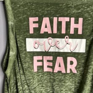This green workout graphic tank with the phrase “Faith Over Fear” from No Boundaries in size small is a motivating and stylish piece designed to inspire and empower during workouts. This tank top combines functionality with a positive message.