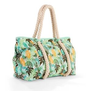 Brand New with Tags, No Boundaries Green Palm Leaf Rope Tote Beach Bag