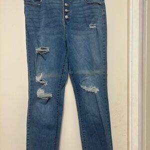 Trendy high rise jeans with stylish distressing. Perfect for casual outings.