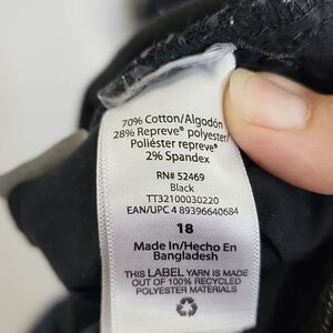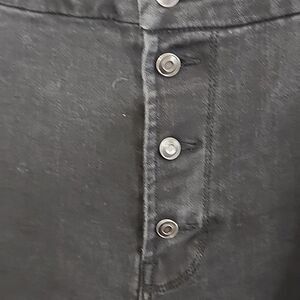 Approximate measurements in photos. Off black with exposed button. Plus size with distressed bottoms. Light stress and may run a little small. Wide leg and cropped. Neutral, minimalist, casual, comfy, trendy, plus size jeans.