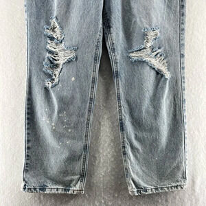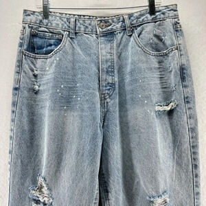 No Boundaries Jeans Womens 33 x 27 Mom High Waist Distressed Light Washed Blue