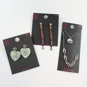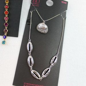 No Boundaries Jewelry Lot NEW 2 Pairs Earrings 2 Necklaces Hearts Seashells