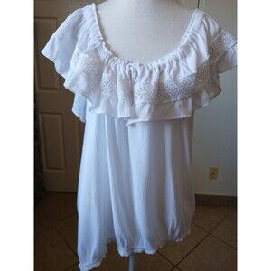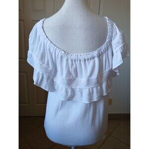 No Boundaries Junior Blouse White Ruffled Off Shoulder Crochet Lace Top XXL Boho