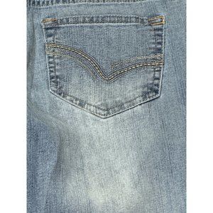 These No Boundaries flare jeans in light wash blue are a size 1, designed for the trendy junior woman. Crafted from a comfortable stretch blend of ramie, cotton, polyester, and spandex.