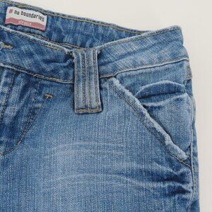 No Boundaries Juniors 3 Blue Denim Jean Bermuda Shorts Y2K Distressed Edges VTG