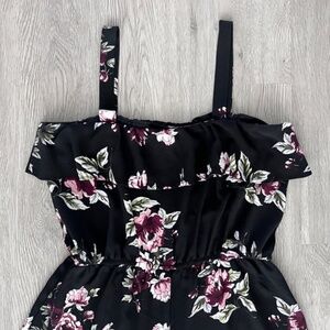 No Boundaries Junior's Black Floral Ruffled Jumpsuit Size XL