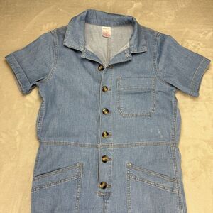 No Boundaries Juniors Denim Short Sleeve Bottom Up Romper Jumpsuit Y2K Sz M 7-9