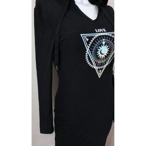 No Boundaries Juniors Hoodie Dress Black Color Size Small (3-5) logo sun love...