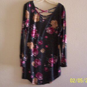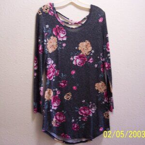 No Boundaries Juniors Long Sleeve Floral Tunic Dress