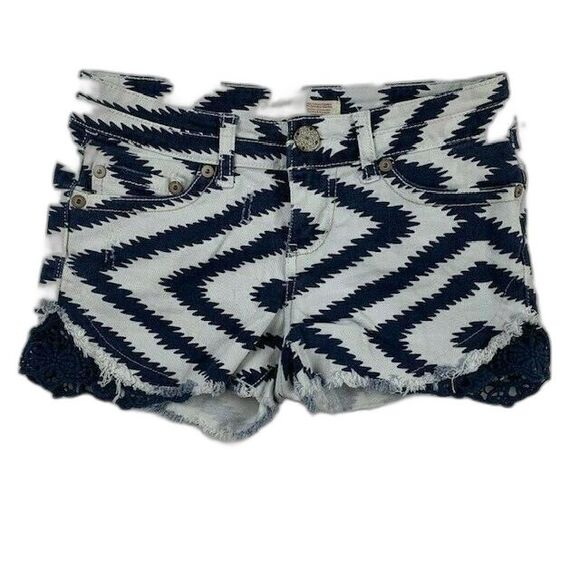 No Boundaries Juniors Shorts Size 1 Navy White Lace Trim