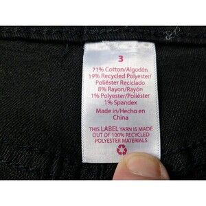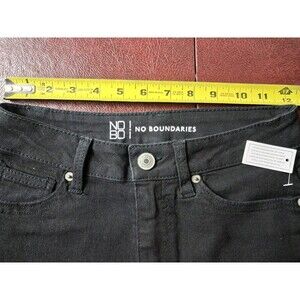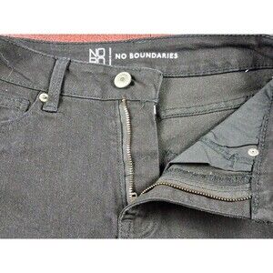 These No Boundaries juniors' size 3 black hi-rise Mom denim blue jeans feature a classic 5-pocket design with a zip and button closure. Made from stretch denim fabric, they offer a comfortable and flattering fit with a 27-inch inseam. Perfect for all seasons, these jeans are machine washable and have a modern solid pattern. The dark wash and high-rise style make them a versatile and stylish addition to any wardrobe.