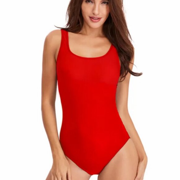 No Boundaries Juniors' Solid One-Piece Swimsuit Baywatch Red