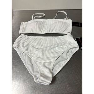 No Boundaries Juniors Textured High Rise Bikini Bottom and Top Set. White. New w