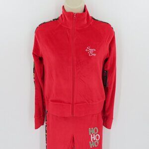 No Boundaries Juniors XS 1 Red Velour Tracksuit Cat Print Christmas Holiday NEW