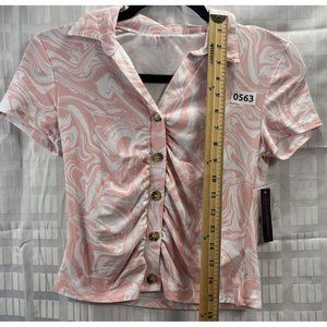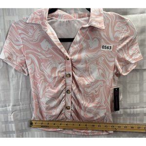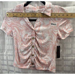 No Boundaries Junior/women’s Top Size S(3-5) color Pink short sleeve Button Up