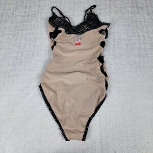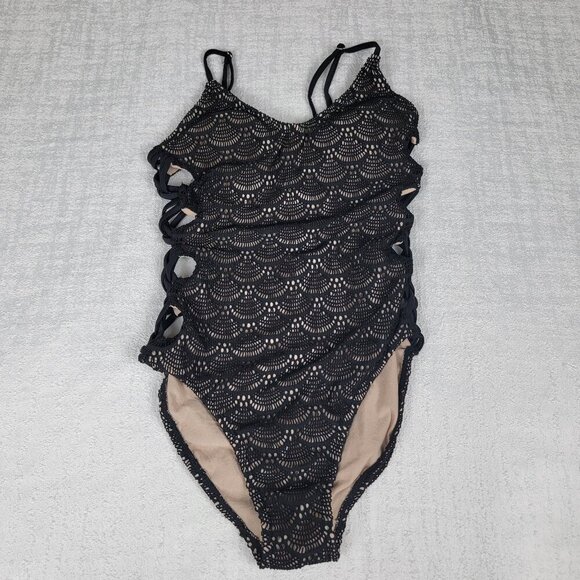 No Boundaries Lace Up One Piece Swimsuit Black Lined Padded Juniors S (3-5)