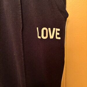 These black and white joggers have the referee stripe down the side and the word love and has pockets. They are in EUC.
