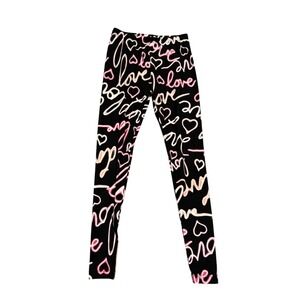 No Boundaries Leggings S Black Pink Love Hearts Print Casual Athleisure