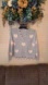 Chic light gray V-neck sweater. Adorned with pink heart accents. Features a unique hem.