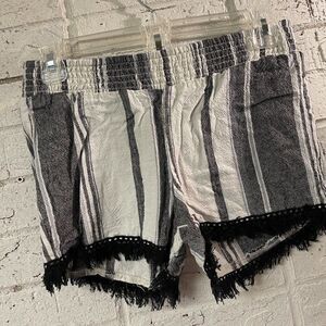 No Boundaries Linen Blend Black White fringe Boho Striped Shorts XS