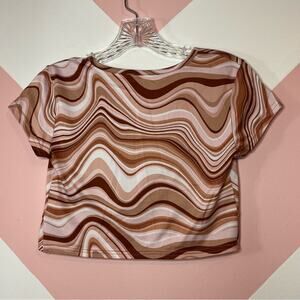 Description: Pink, white and tan color. Marble. Groovy pattern. Crop top. 95% Polyester and 5% Spandex.