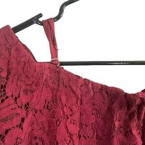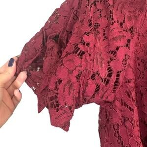 No Boundaries Maroon Lace Applique Eyelash Trim Short Sleeve Blouse Women Sz L