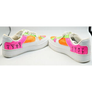 Add a burst of personality to your step with these custom-painted No Boundaries memory foam sneakers in women’s size 9.5. Featuring vivid neon green, orange, pink, and yellow flower petal art on a classic white low-top silhouette, these shoes are perfect for casual wear, festivals, or unique street style. Lightly worn soles, but upper is clean and the hand-painted design is sealed for durability. Great for anyone wanting a one-of-a-kind sneaker.