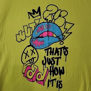 No Boundaries Mens 3X Large Tshirt Neon Yellow Oversized Airbrush Street Art Y2K