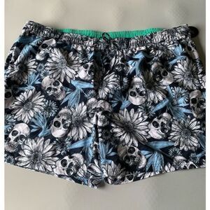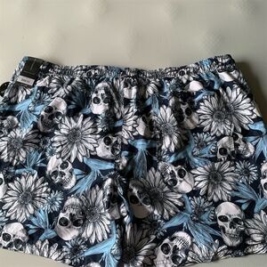 No Boundaries Men's 3XL Skull Floral Swim Trunks Elastic Waist Multicolor