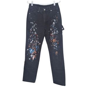 No Boundaries Men's Carpenter Pants Black Paint Splatter Streetwear Size 28 x 30