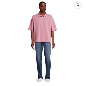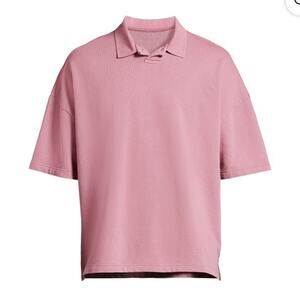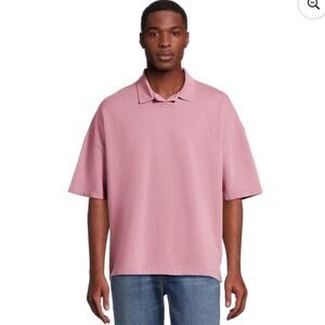 No Boundaries Mens Oversized French Terry Polo Shirt, Size Large Pink NEW Cotton