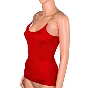 No Boundaries Metallic Red Tank Top Gold Chain Strap Detail Juniors Size 7 - 9