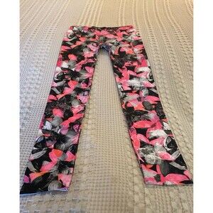 No Boundaries NOBO Leggings Sz Jr Medium 7-9 Hot Pink Gray Floral Athleisure