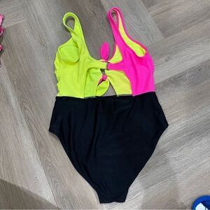 No Boundaries Neon Color Block cutout One-Piece Swimsuit Size L