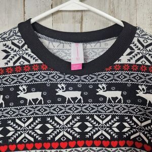 No Boundaries Nordic Reindeer Heart Knit Sweater Heather Gray Size XS