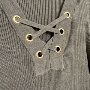 No Boundaries Olive Green Ribbed Stretchy Lace Up Sweater XXL NWOT