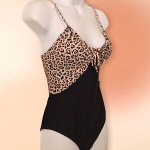 Leopard Print and Black One Piece Swimsuit by No Boundaries.